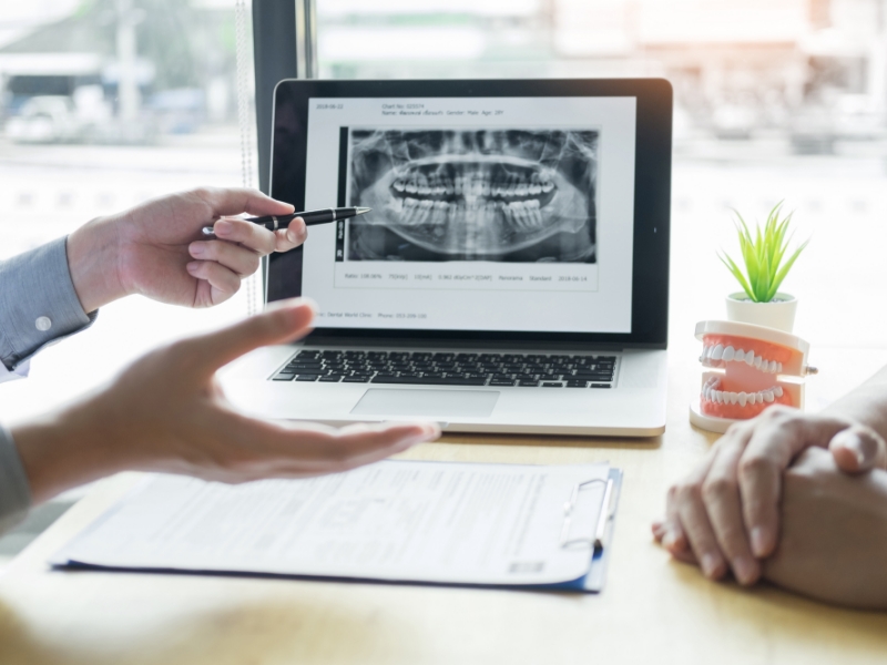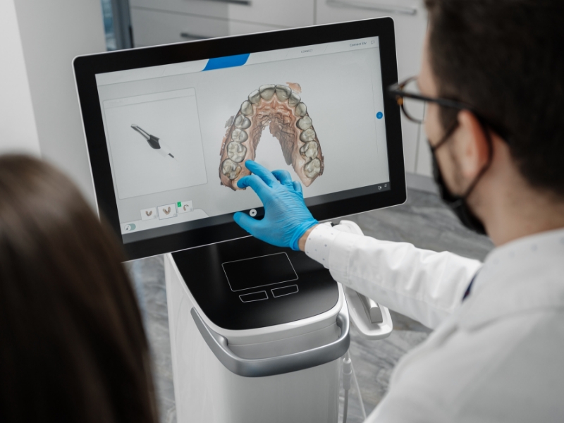 専用の光学カメラで口腔内をスキャンし、現在の歯の状態を正確に把握します。検査は短時間で終わります。